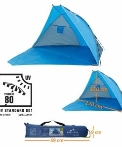 EXPLORER Strandmuschel Sonnenschutz Wind Schutz Strand Zelt UV 80 Verschließbar