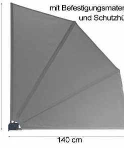 Grasekamp 2 Stück Balkonfächer Grau Premium 140 X 140 Cm Mit Wandhalterung Trennwand Sichtschutz