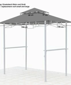 Grasekamp Ersatzdach Für BBQ Grill Pavillon 1,5×2,4m Grau Unterstand Doppeldach Gazebo