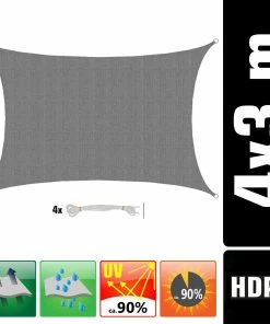 Amanka UV Sonnensegel 3×4 HDPE Rechteckig Sonnenschutz Überdachung Garten Balkon Grau