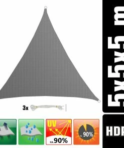 Amanka UV Sonnensegel 5x5x5 M HDPE Dreieck Sonnenschutz Überdachung Balkon Garten Grau
