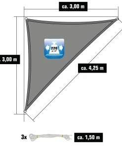Amanka UV Sonnensegel 3x3x4,2 HDPE Dreieck Rechtwinklig Sonnenschutz Garten Grau