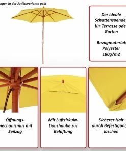 MCW Sonnenschirm Lissabon, Gartenschirm Marktschirm, Ø 3,5m Polyester/Holz 7kg ~ Gelb