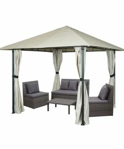 Pergola MCW-E42, Garten Pavillon, Mit Moskitonetz 3,6x3m ~ Creme