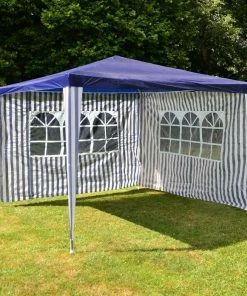 VCM Pavillon 3×3 M In Blau Weiß PE Plane 2 Seitenteile Partyzelt Gartenzelt Zelt