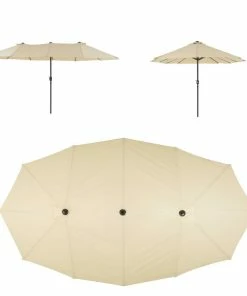 VCM Doppelsonnenschirm XXL Sonnenschirm Creme 4,65m Kurbel Polyester 180g/m² Garten
