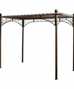 DEGAMO Anbaupavillon MANTOVA 3×2,5 Meter, Stahl Dunkel, Plane PVC-beschichtet écru