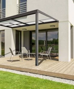 Juskys Terrassendach 3×3 M Mit Schiebedach – Alu Mit Doppelstegplatten – Wetterfeste – UV-Schutz