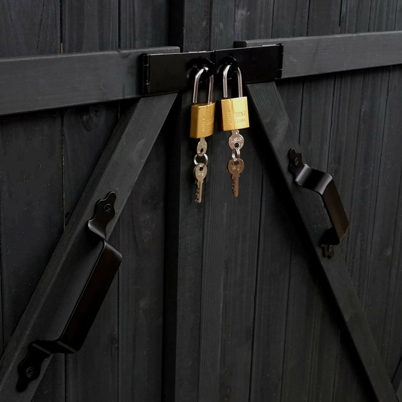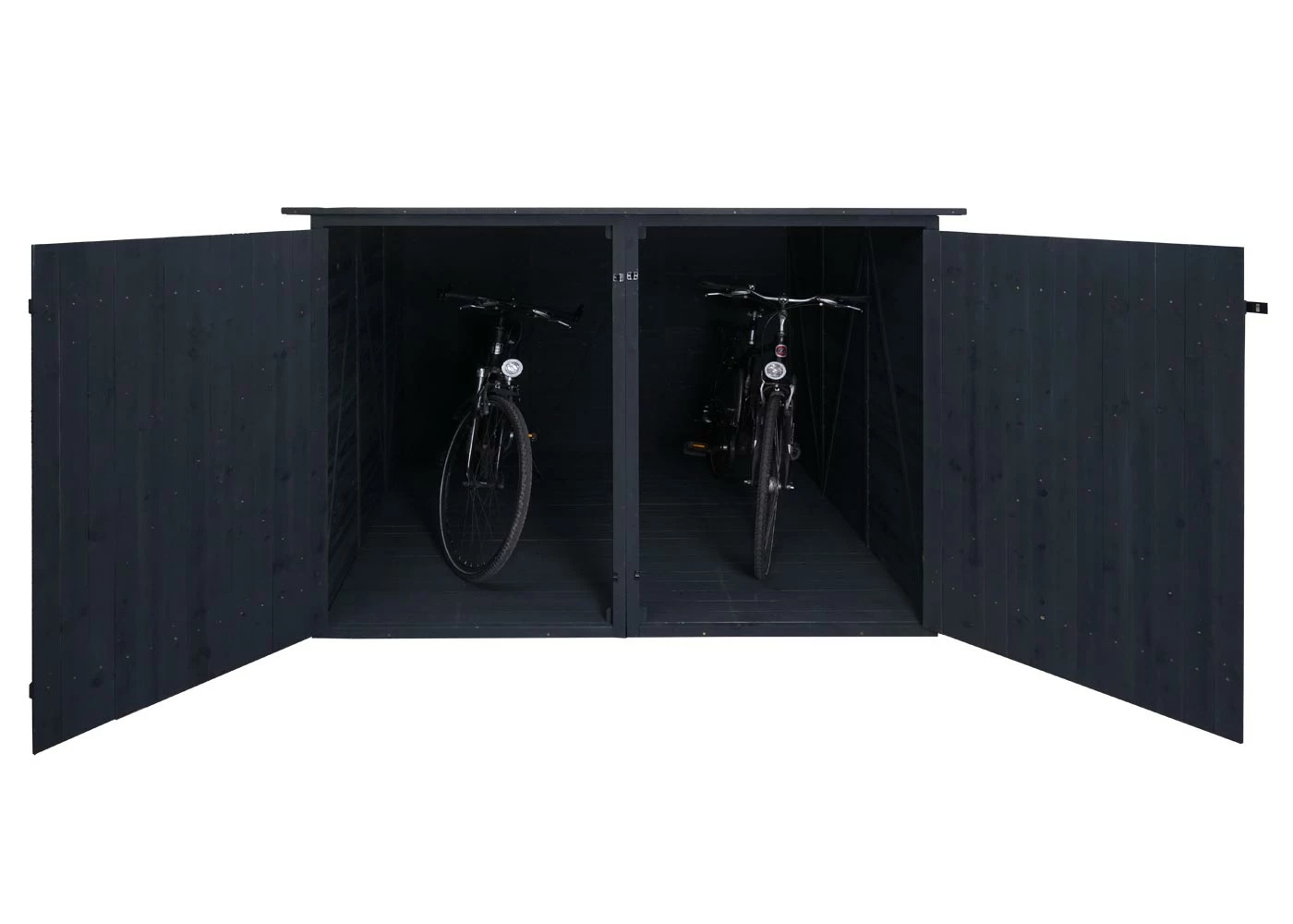 In der Fahrradbox ist Platz für zwei Räder. Beide Türen sind getrennt abschließbar, so sind Ihre Räder immer vor Diebstahl und schlechtem Wetter geschützt. Die Türen sind jeweils mit einem Riegelschloss und einem normalen Schloss ausgestattet. Im Lieferumfang sind natürlich Schlüssel enthalten. Bei Holz handelt es sich um ein Naturprodukt. Wir empfehlen Ihnen dieses in regelmäßigen Abständen neu zu behandeln, um es vor Witterungseinflüssen zu schützen.