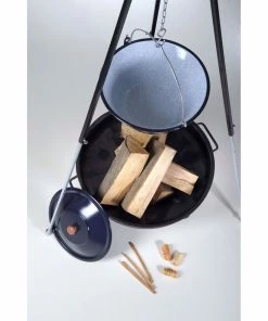 Gulaschkessel 14L + Dreibein-Gestell (180cm) + Feuerschale (55cm) + Kaminholz Buche
