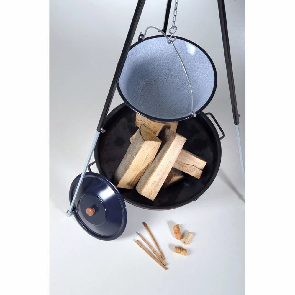 Gulaschkessel 22L + Dreibein-Gestell (180cm) + Feuerschale (55cm) + Kaminholz Buche