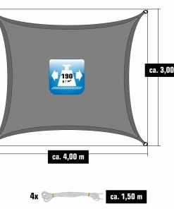 Wir empfehlen Dir, das Sonnensegel mit einer Neigung von 20° anzubringen – bei Regen könnten sich Wassersäcke bilden.