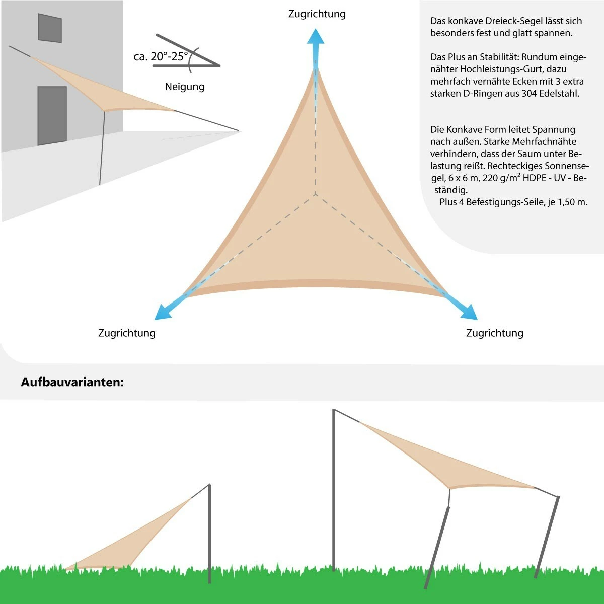 Sogar leichter Windschutz! Die konkave Form leitet Spannung nach außen: Du kannst das Segel besonders fest und glatt spannen.
