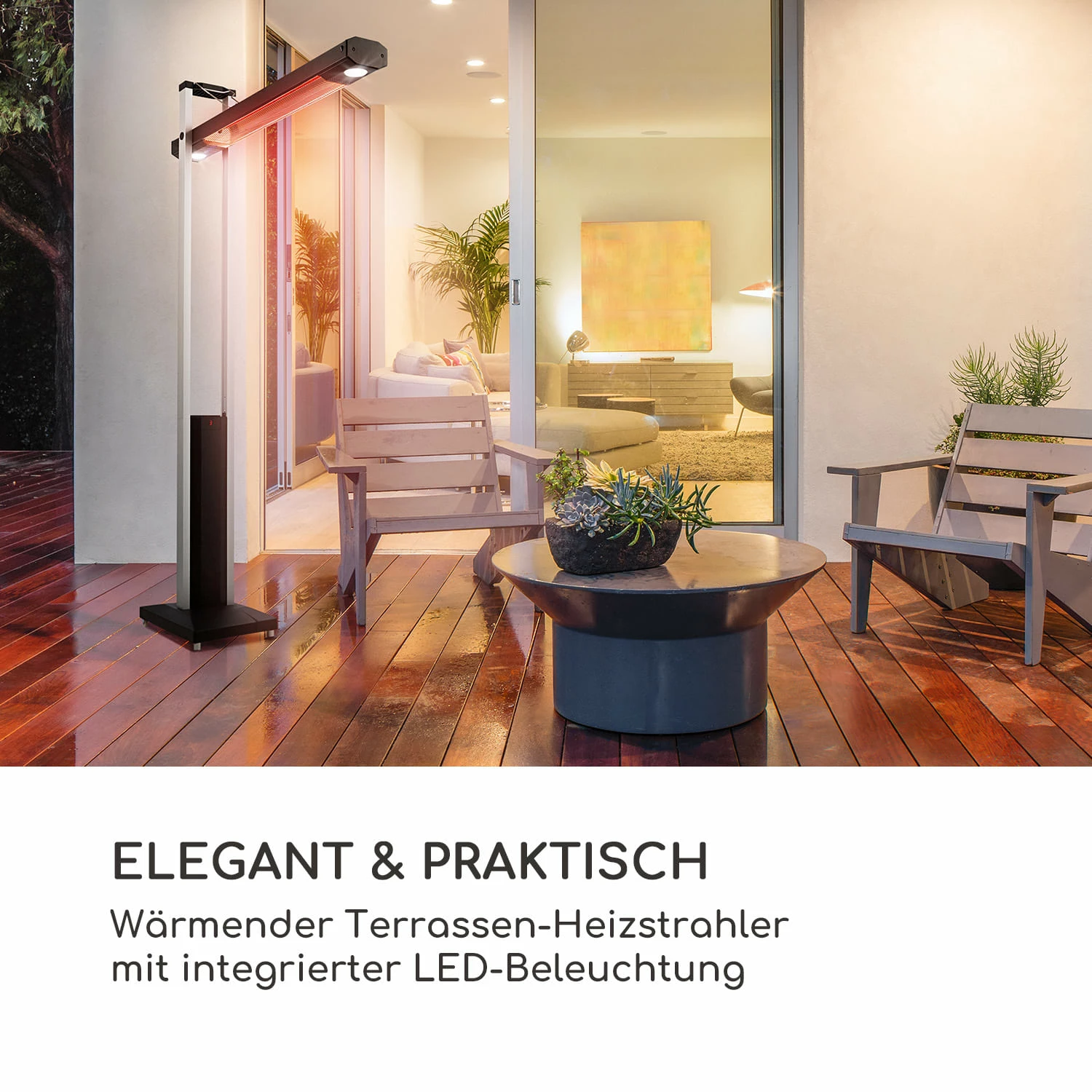 - Elegant & praktisch: wärmender Terrassen-Heizstrahler mit integrierter LED-Beleuchtung