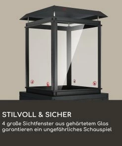 - Stilvoll & sicher: 4 große Sichtfenster aus gehärtetem Glas garantieren ein ungefährliches Schauspiel