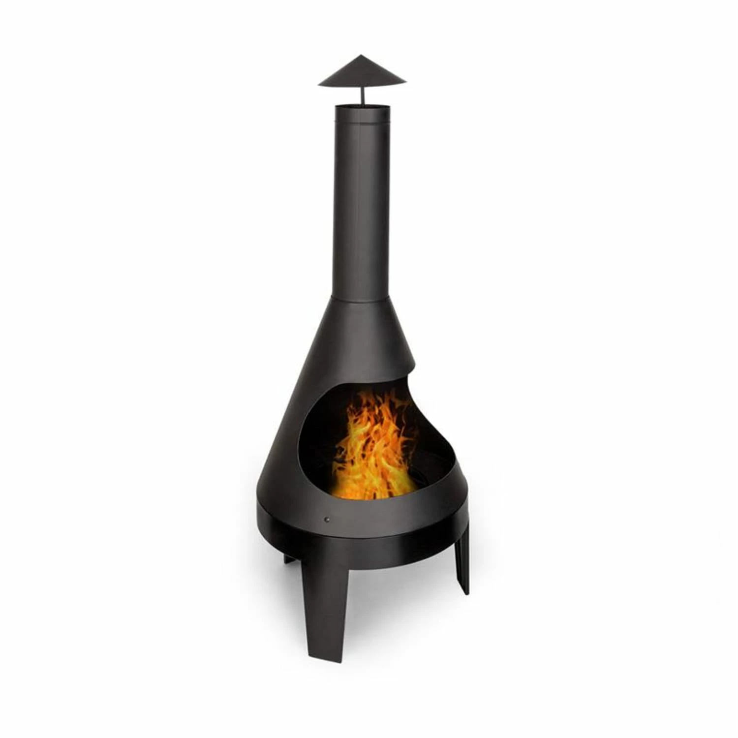 Egal ob mit oder ohne flackernde Flammen, der Blumfeldt Hidalgo Gartenkamin ist ein dekorativer Höhepunkt im Garten, auf dem Hof oder der Terrasse. Komplett aus Stahl gefertigt, ruht er auf drei stabilen Füßen, die durch den Kaminkegel mit langer Esse gekrönt werden. Die Esse endet an einem kleinen Spitzdach, das direkt vor ungewünschtem Funkenflug schützt. Der gesamte Kamin ist aus Stahl gefertigt, der ihm seinen rustikalen Charme verleiht, ohne das Umstellen der Feuerstelle durch hohes Gewicht zu belasten.