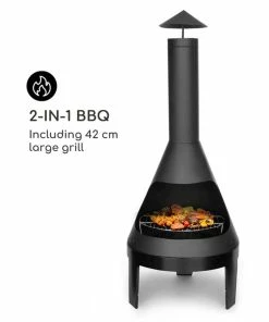 In seiner kegelförmigen Brennkammer mit 55 cm Durchmesser bietet der Blumfeldt Hidalgo Gartenkamin viel Platz, um ein zünftiges Lagerfeuer aus Holzscheiten oder Holzkohle zu unterhalten. Die 155 cm hohe, dekorative Konstruktion verhilft dem flackernden Inferno dank FireView-Prinzip zu noch mehr Eindruck: Die vorn offene Feuerstelle gibt ungehindert den Blick auf die Flammen frei und macht gleichzeitig deren Wärme den Lagerfeuergästen zugänglich. So ist auch das Nachlegen von Brennmaterial oder das Anfachen des Feuers mit dem mitgelieferten Schürhaken jederzeit möglich. Abgebranntes Material fällt in die herausnehmbaren Ascheschale und kann mit der mitgelieferten Schaufel ganz mühelos entsorgt werden. Dank praktischem 2-in-1-Prinzip wird der Blumfeldt Hildalgo im Handumdrehen zum vollwertigen Grill: Einfach den 42 cm durchmessenden Grillrost in die Feuerschale stellen und schon kann nach Herzenslust gebrutzelt werden.