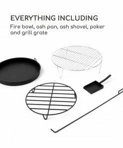 - Alles dabei: inklusive Feuerschale, Aschekasten, Ascheschaufel, Schürhaken und Grillrost