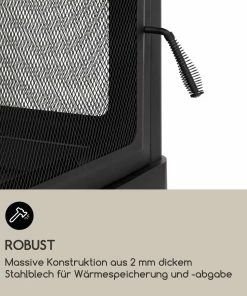 - Robust: massive Konstruktion aus 2 mm dickem Stahlblech für Wärmespeicherung und -abgabe
