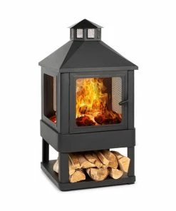 Blumfeldt Macondo Feuerstelle Gartenkamin Feuerlaterne Gartenofen | Feuerschale: 35 x 35 cm | Holzfach | FireView | massive & stabile Konstruktion aus Stahl | schwarz