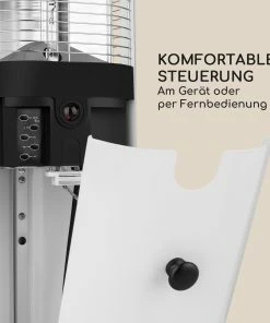 Für hohe Heizpower und effektive Strahlung sorgen drei Carbon-Heizelemente mit jeweils 900 Watt. Dabei kannst du wählen, wie viele der Heizstufen du gleichzeitig einschalten möchtest. Auf der höchsten Stufe heizen 2700 Watt ordentlich ein und sorgen überall für wohlige Wärme. Gesteuert werden kann der Heizstrahler außer am Gerät bequem über die beiliegende Fernbedienung. Dank Schutzart IP34 ist der Strahler vor Spritz- und Strahlwasser geschützt und so ideal für den Einsatz im Freien geeignet.