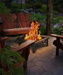 - dekorativer, eckiger Feuertisch für den Garten oder die Terrasse