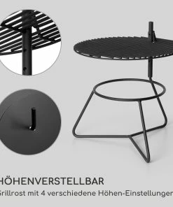 Inklusive 4-fach höhenverstellbarem 40 cm Grillrost aus Stahl mit abnehmbarem Grillrost-Halter sowie Schürhaken.