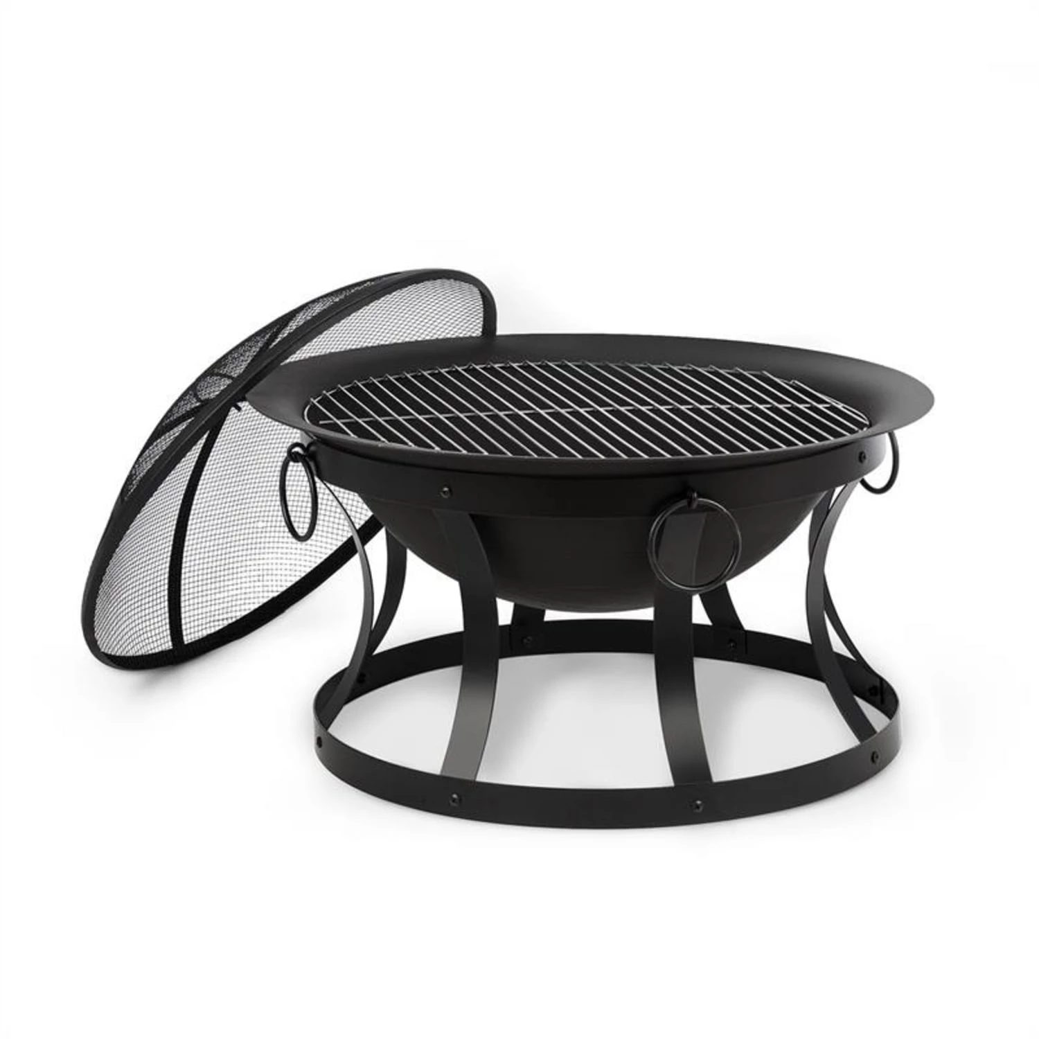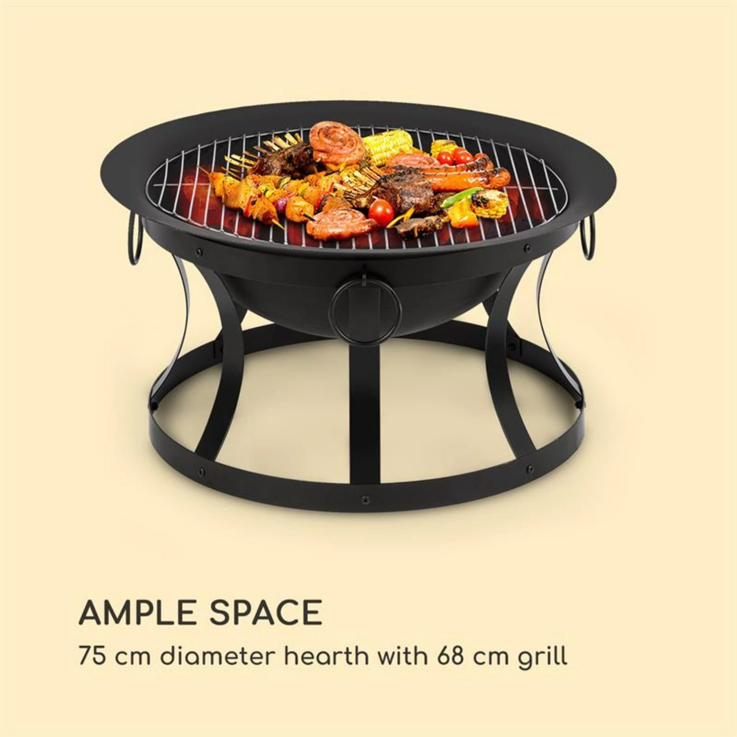 Blumfeldt Pentos 2-in-1 Feuerschale und Grill | Ø 73 cm | abnehmbarer Funkenschutz | Grillrost: Ø 60 cm | FireView Concept | Gusseisen | Trageringe | inklusive Schürhaken und Grillrost | schwarz