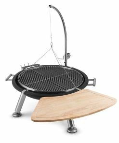 Damit das Grillen besondere Freude bereitet, hat Blumfeldt den Galgenschwenkgrill mit praktischen Extras ausgestattet. So kann an der Seite der Feuerschale eine große Holzarbeitsfläche eingehängt werden, die sich entweder als Schneidbrett für die Vorbereitung oder als Abstellfläche für rohes und zubereitetes Grillgut, das Getränk des Grillmeisters oder Saucen und Gewürze nutzen lässt. Eine ebenfalls ansteckbare Hakenleiste bietet fünf Halterungen für Grillbesteck und Grillhandschuhe, sodass alles direkt am Turion griffbereit ist, wenn es benötigt wird. Zwei Tragegriffe an der Feuerschale machen das Versetzen des Grills zum Kinderspiel.