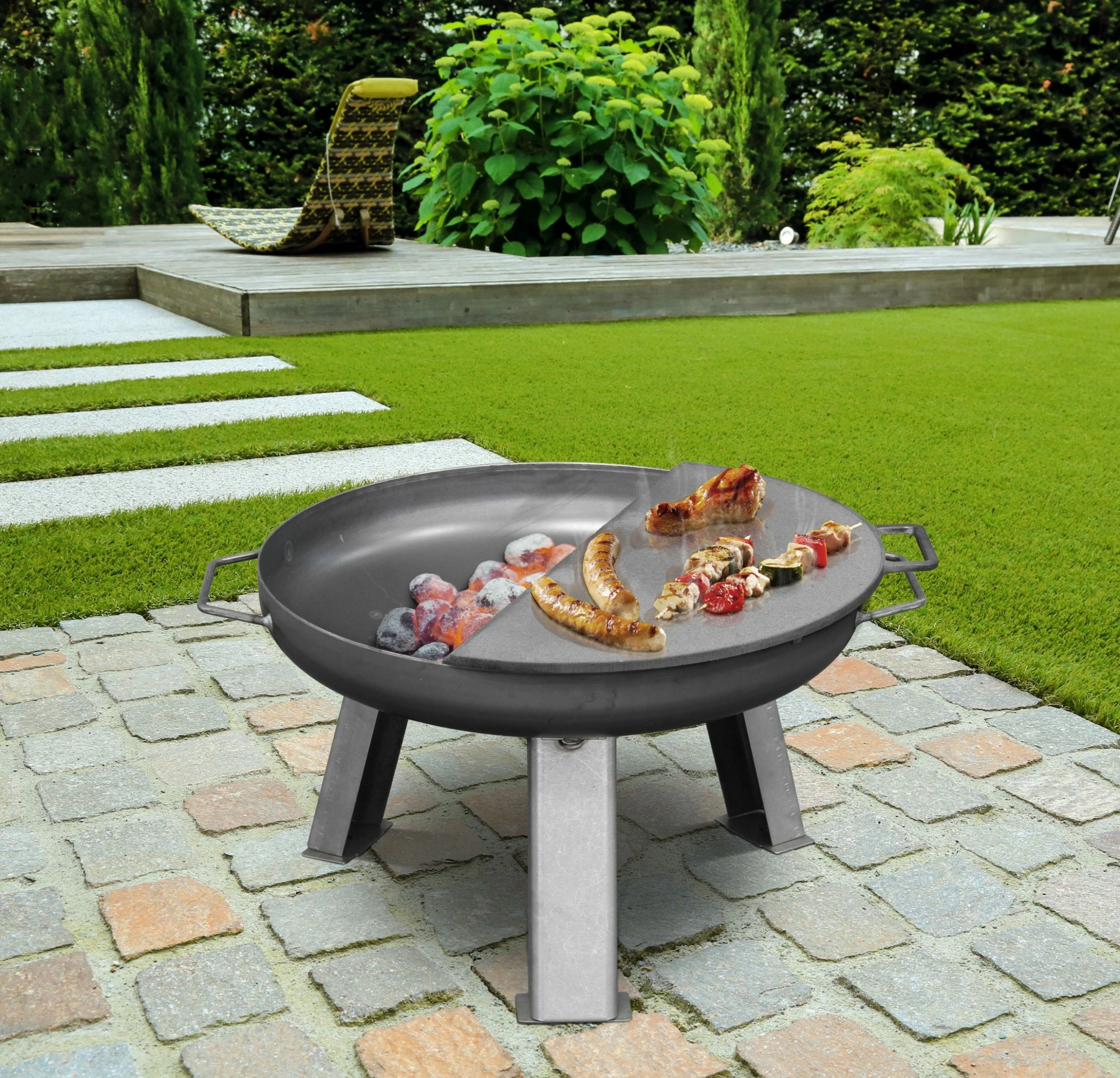 Eine Guss-Grillplatte als Ergänzung zur Feuerschale.