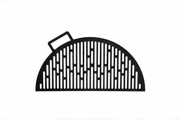 Ein halbkreisförmiger Guss-Grillrost zum Auflegen.