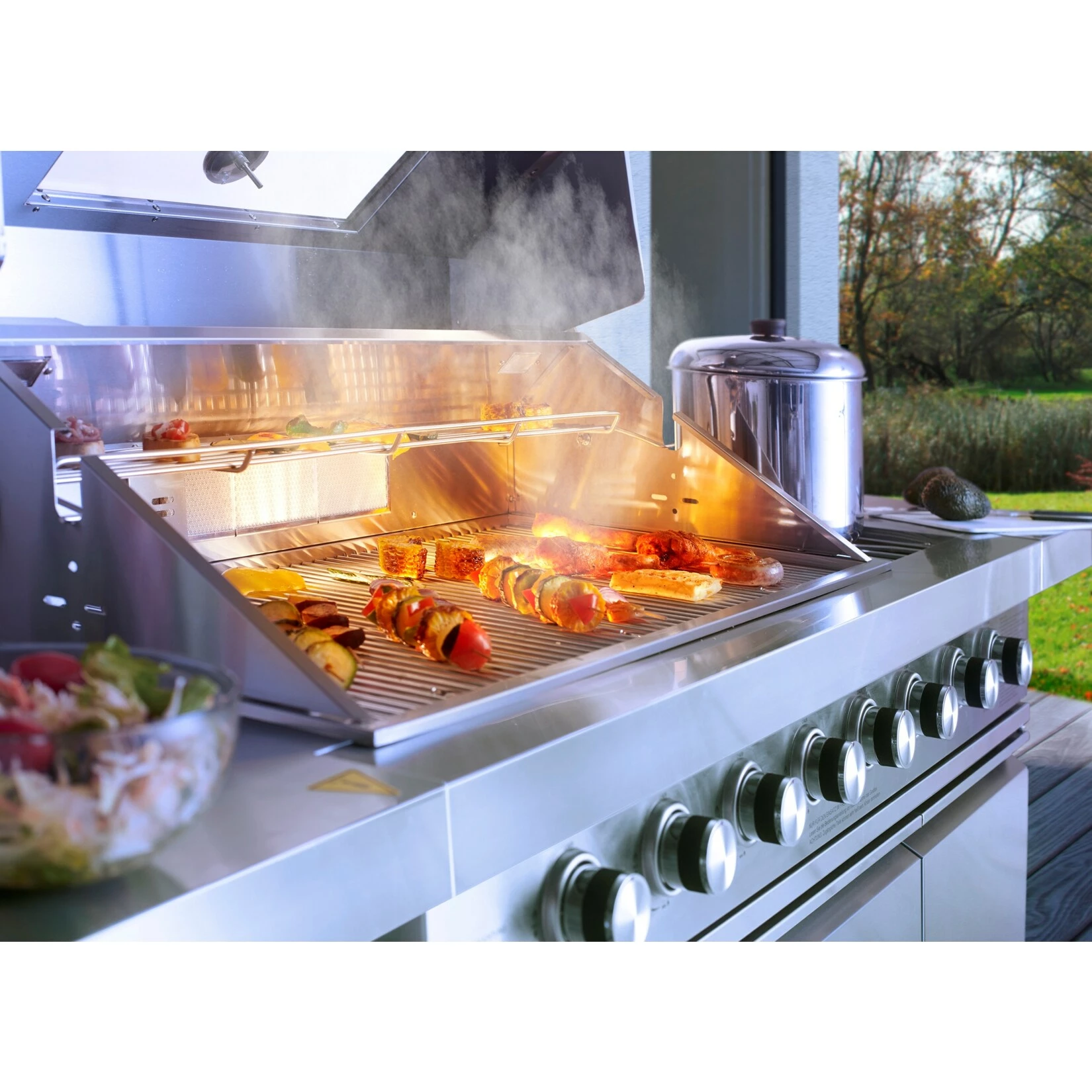 Die sechs leistungsstarken Edelstahlbrenner sind getrennt regelbar und bieten so die Gelegenheit direkt oder indirekt zu grillen.
