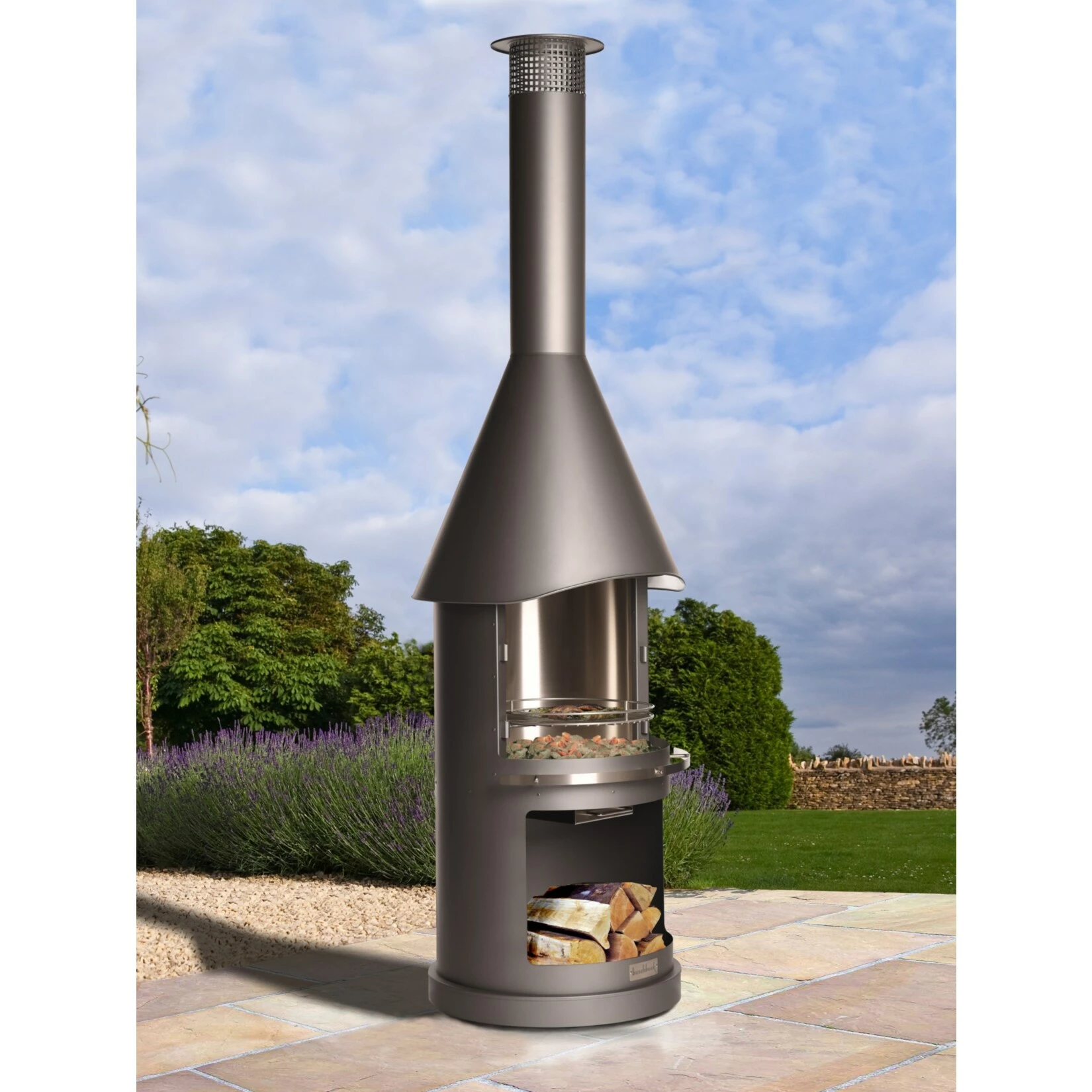 - Beweglicher Gartengrillkamin auf vier Gummirollen