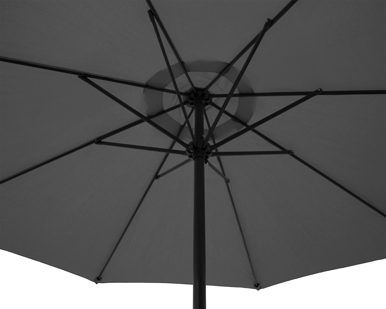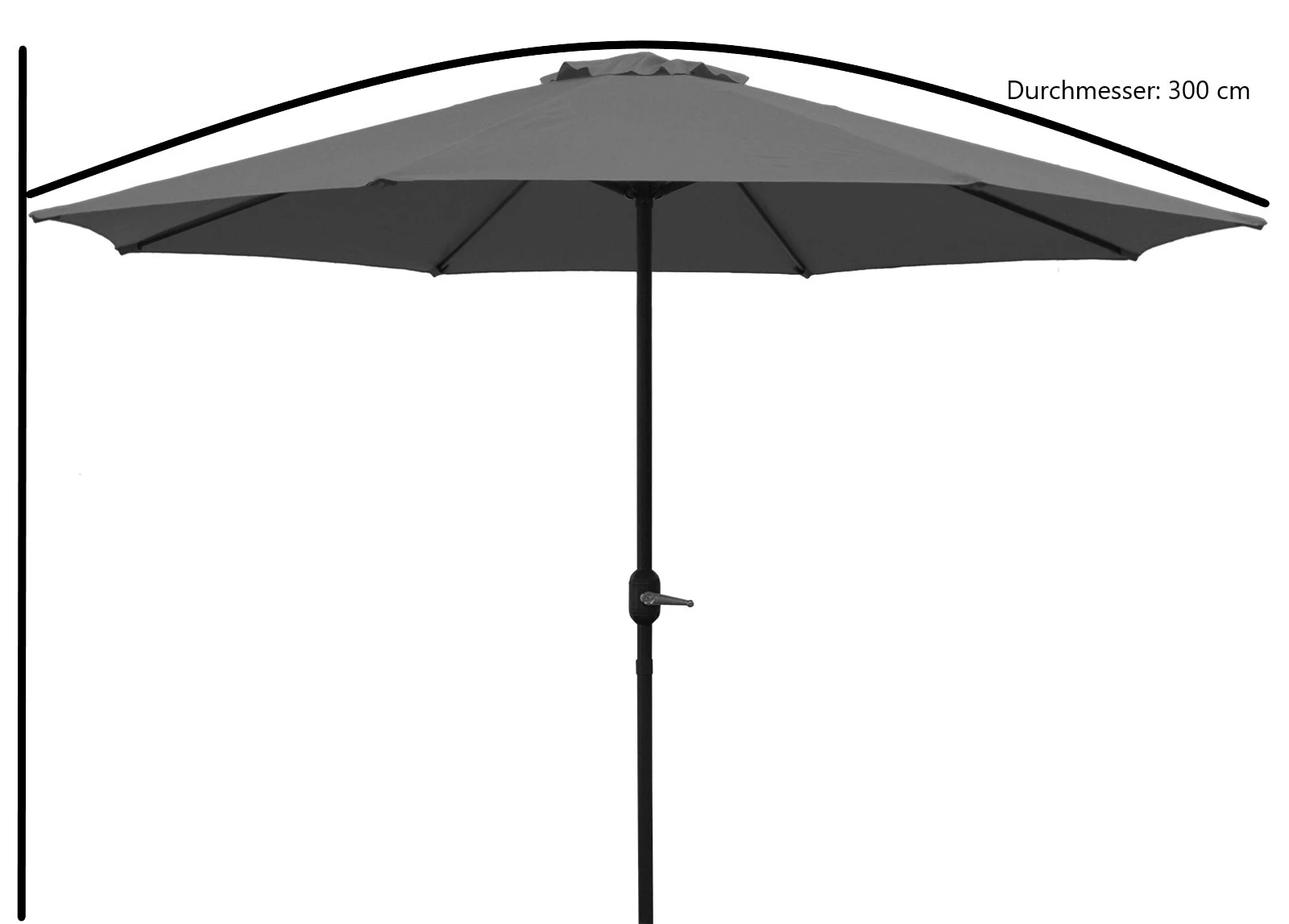 Solider Marktschirm / Landhausschirm mit Aluminiumrohr, rund (8-eckig) mit 300cm Durchmesser. Material Bezug: 100% Polyester. Das Gestänge ist anthrazit pulverbeschichtet, die Bespannung besteht aus widerstandsfähigem Polyester mit einem UV-Schutzfaktor von 50+, was der höchsten Schutzstufe entspricht.