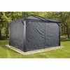 An den Seiten und dem oberen Rand befinden sich Ösen, durch welche die Planen am Gestänge befestigt werden können (empfohlen werden Spanngummis zur Befestigung – nicht im Lieferumfang enthalten).