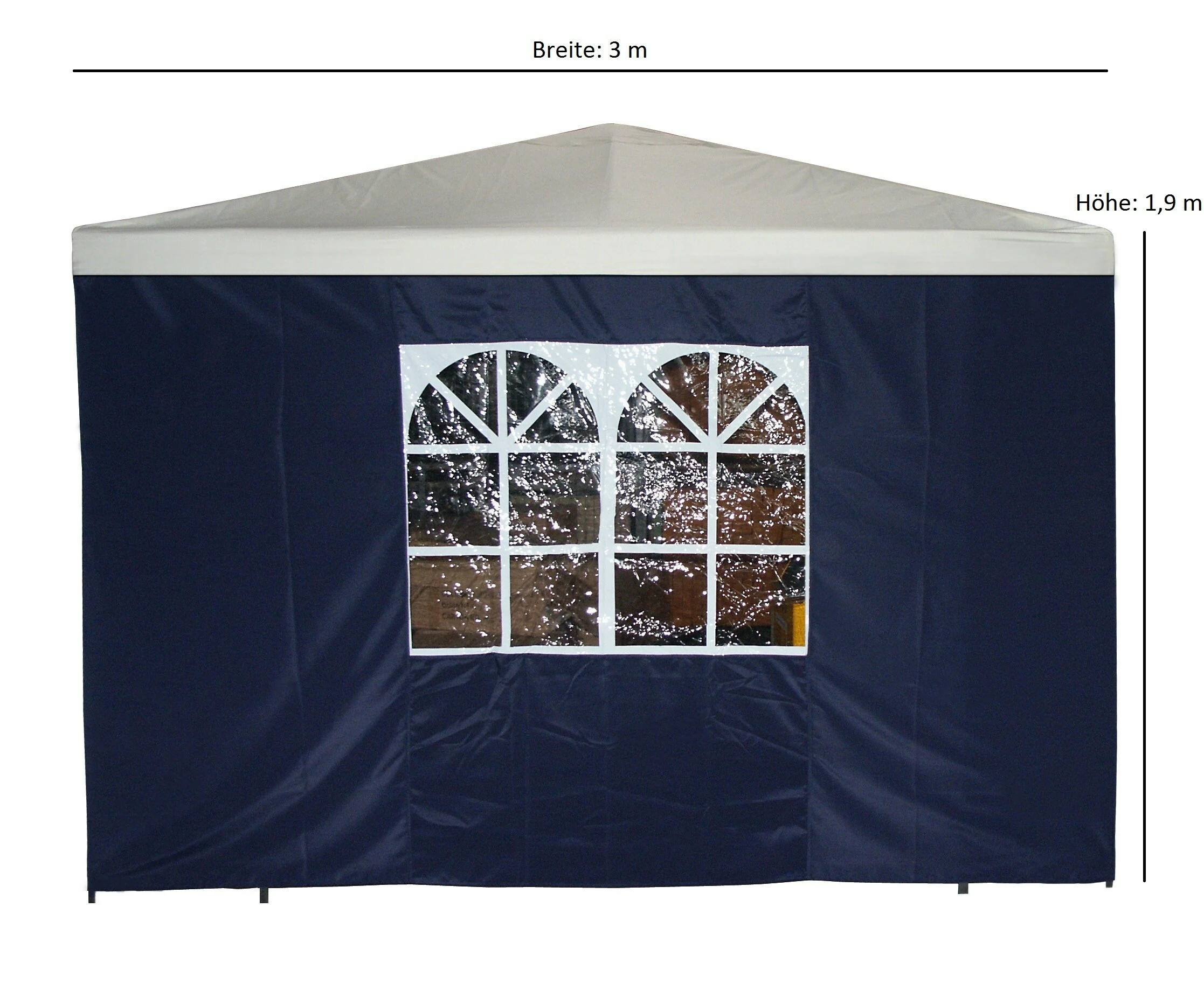 Seitenteil für Pavillon 3×3 Metermit Fenster, Farbe: dunkelblau.