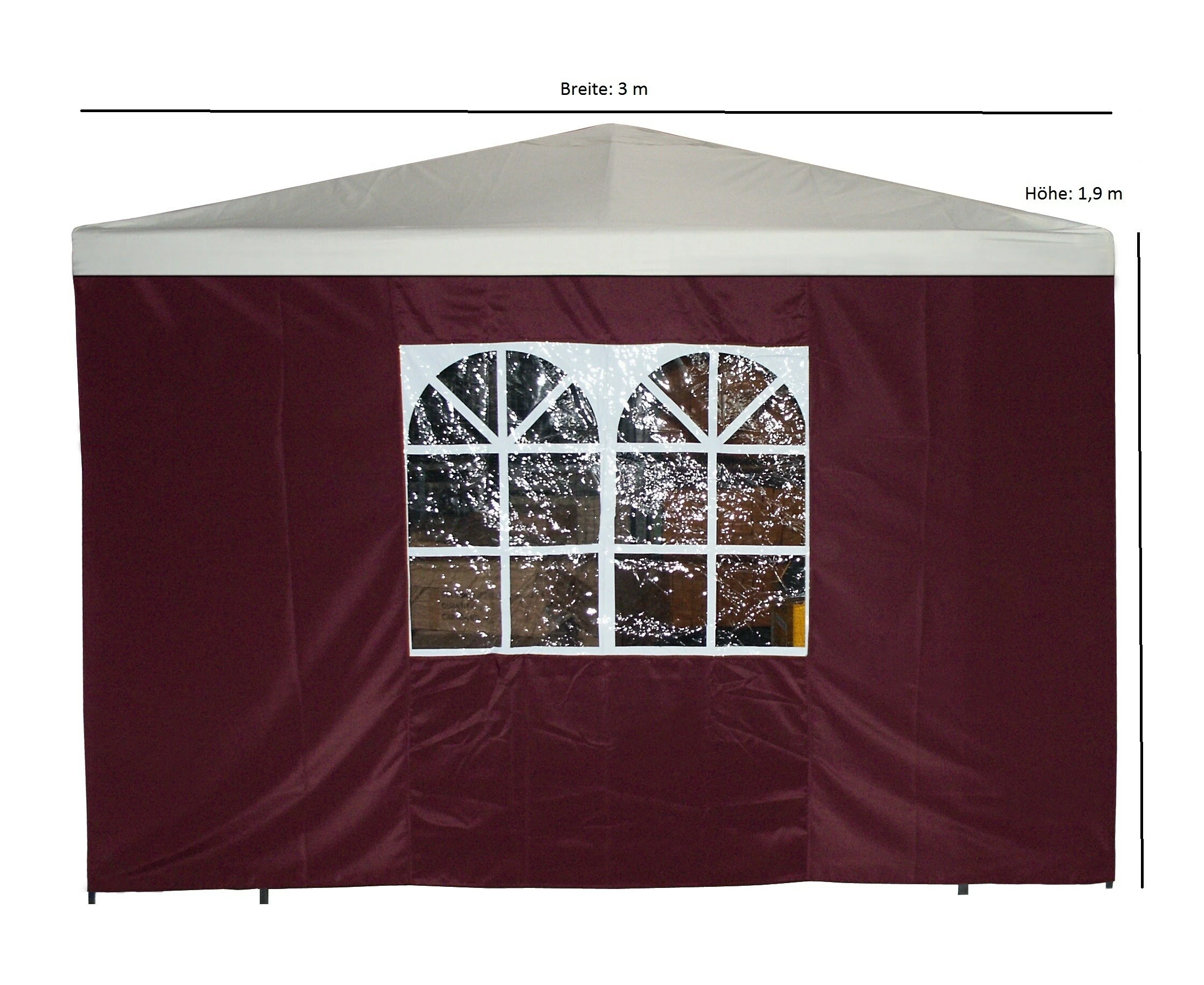 Seitenteil für Pavillon 3×3 Metermit Fenster, Farbe: bordeaux (dunkelrot).