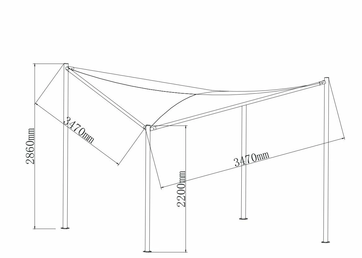 Stabiles Material: Dach aus PVC-beschichtetem Polyester, 250g/m², Gestänge aus dunkel pulverbeschichtetem Stahlrohr. Standbeine 50mm Durchmesser, Träger 38mm Durchmesser. Materialzusammensetzung: 100% Polyester mit PVC Beschichtung.