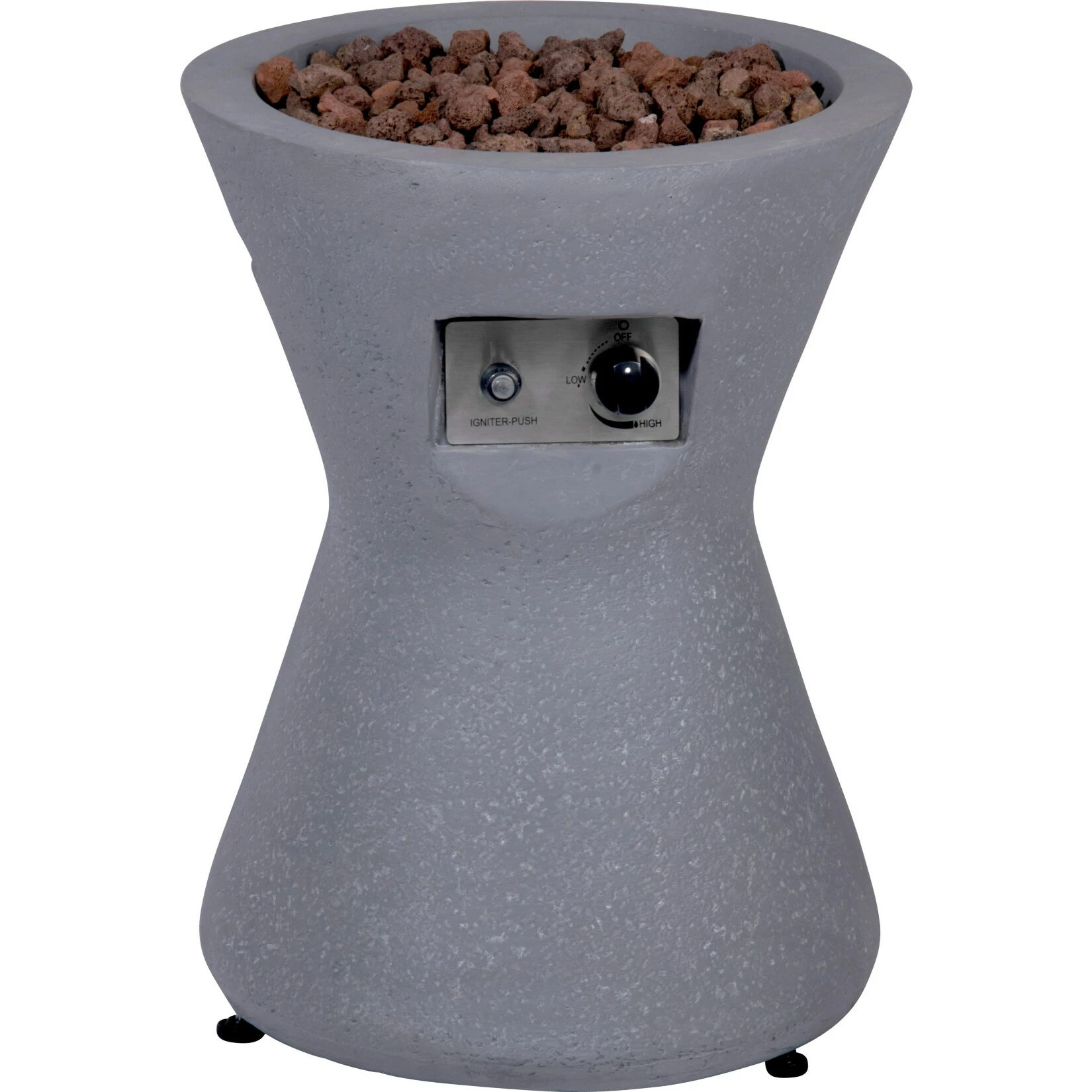 - Lieferumfang: Feuerschale, Lava-Steine (ca. 3 kg), Abdeckung in Holz-Optik, Polyester Abdeckung, Gasschlauch mit Regler (Länge: 304,8 cm), Metallständer