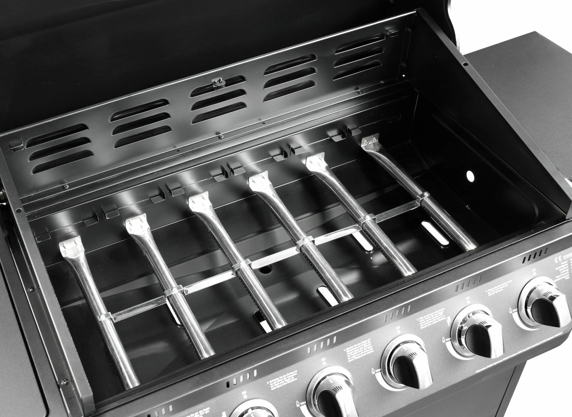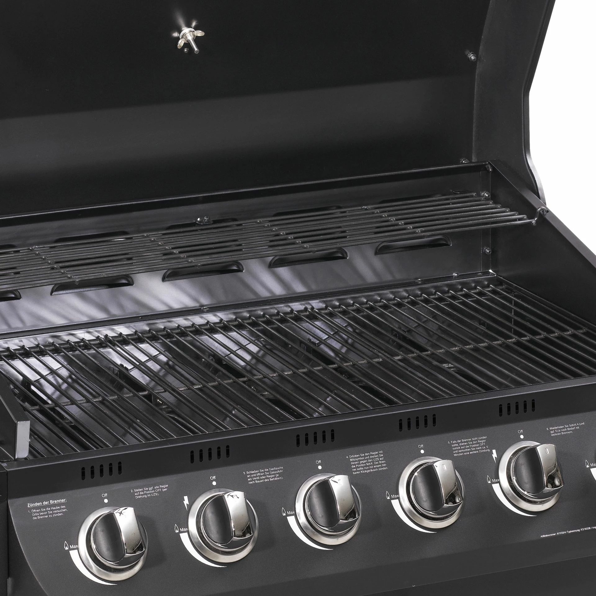 - Leistung: ca. 21,08 kW (6 Hauptbrenner je 2,93 kW + 1 Seitenbrenner 3,5 kW)