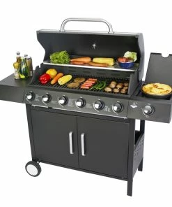 – Gasverbrauch: ca. 1405 g/h (6 Hauptbrenner je 204 g/h + 1 Seitenbrenner 181 g/h)