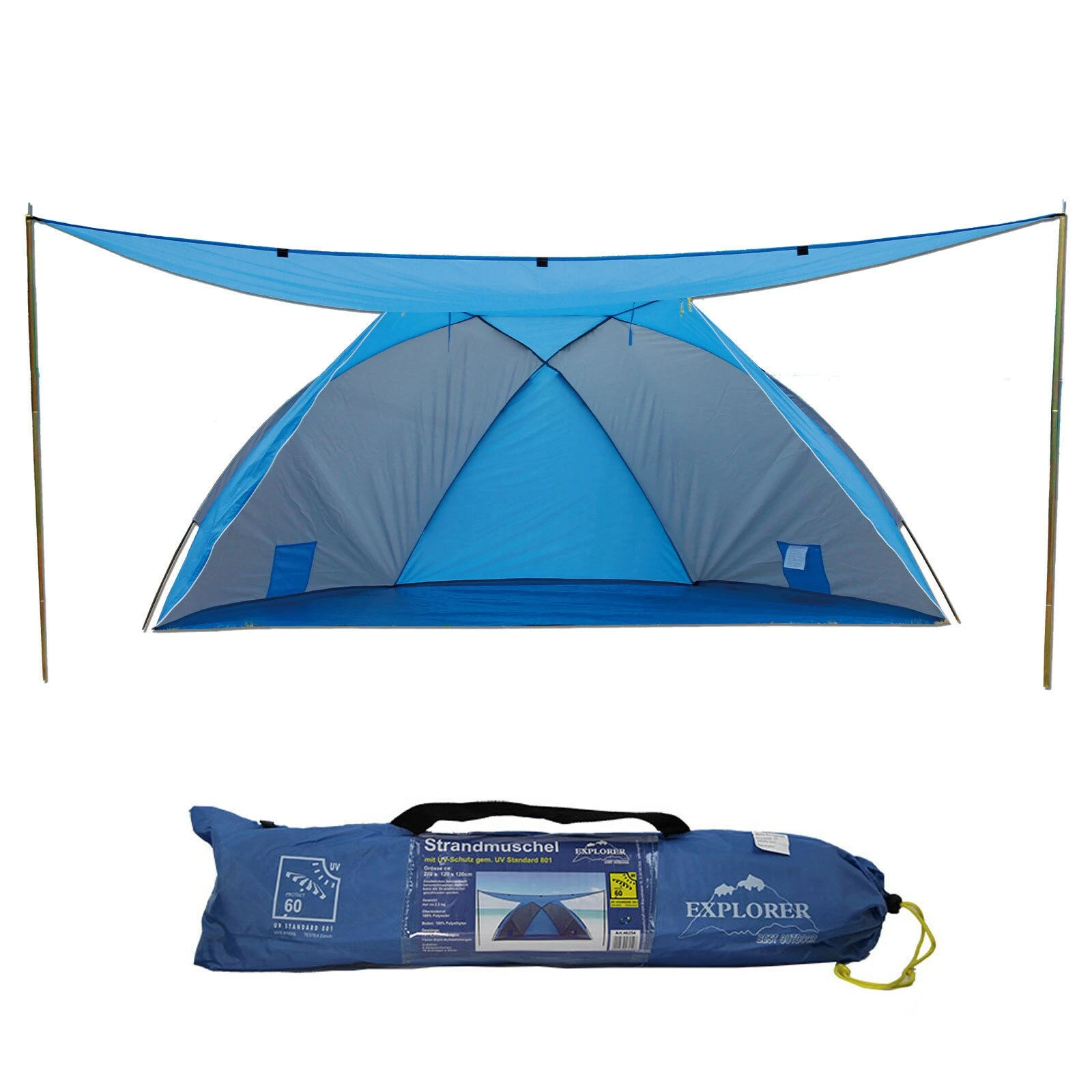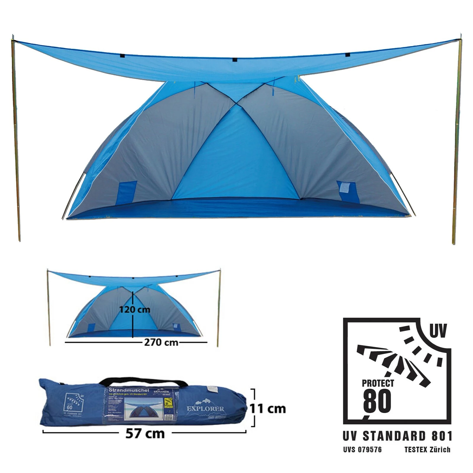 Diese Strandmuschel vom Hersteller Explorer bietet mit ihrem großen Vordach besonders umfangreichen Sonnenschutz bei Ihrem Strandbesuch. Das großzügig gestaltete Sonnensegel lässt sich dabei problemlos auch als optional verschließbare Tür der Strandmuschel nutzen.