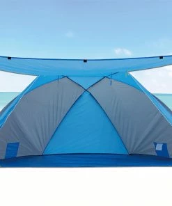 Das Zelt besitzt einen UV-Schutzfaktor 80. Das Risiko einer Entstehung von Sonnenbrand und Hautkrebs wird damit deutlich vermindert.