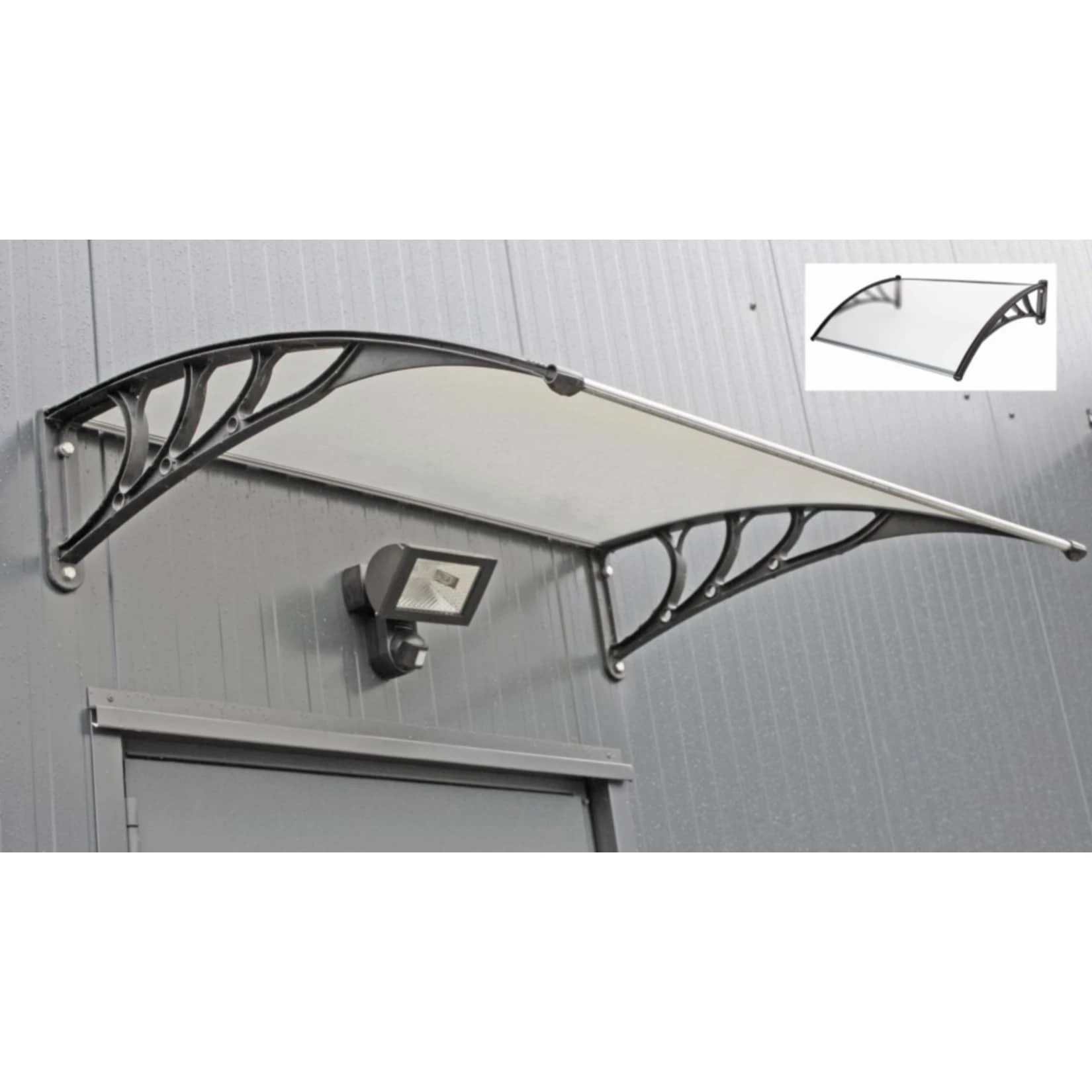 Vordach 100×120 cm PC mattiert Material: Halterung PP schwarz Maße LxBxH cm ca.: ca. B120xT100 cm Mehrere Dächer können verbunden werden Zusatzinfomationen: PC Polycarbonat
