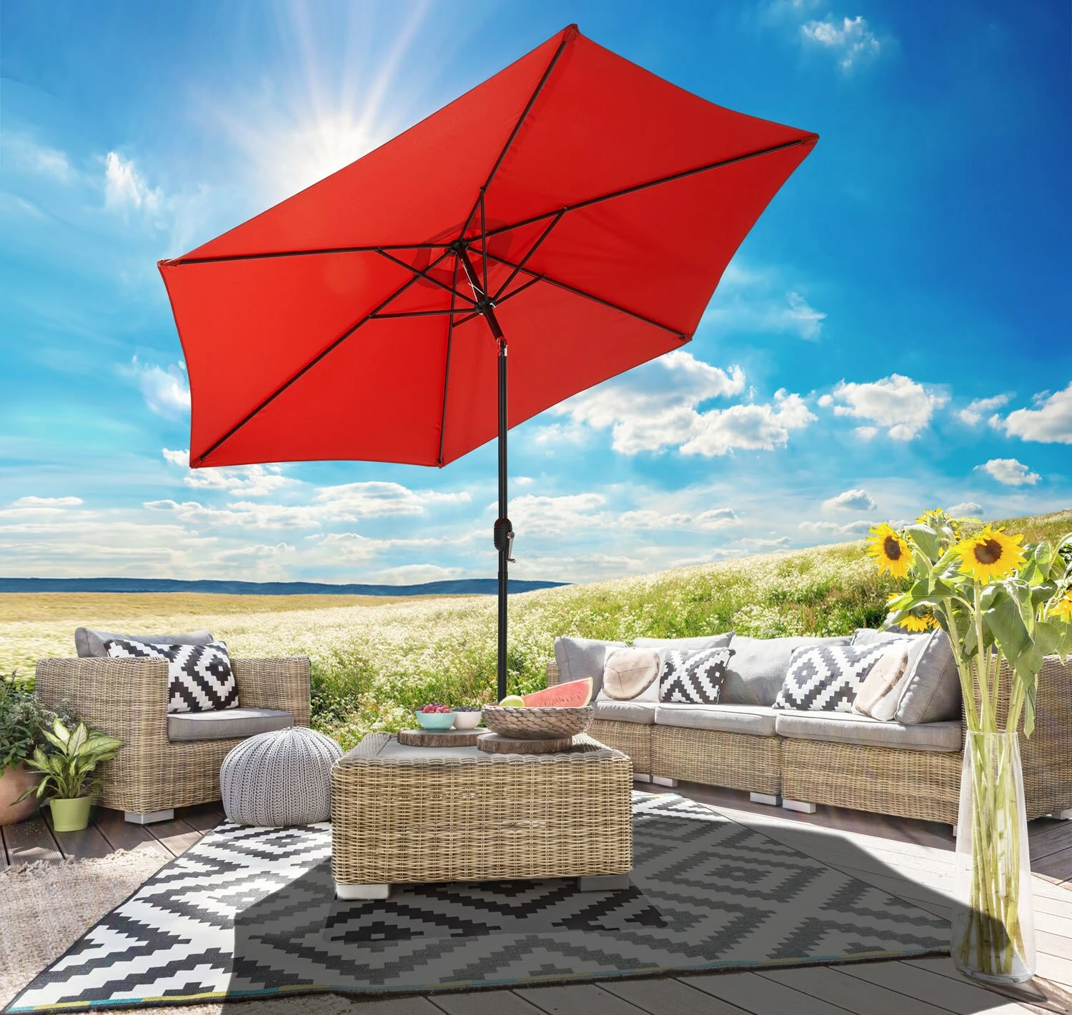 Der Gartenfreude Sonnenschirm ist aus stabilem Stahl gefertigt. Der Durchmesser vom Schaft beträgt 38 mm. Der Schirm ist mit einer leichtgängigen Kurbel ausgestattet, durch diese die Schirme sich leicht öffnen und schließen lassen. Durch das vorhandene Knickgelenk lässt sich der Schirm neigen. Die Anzahl der Streben beträgt 6. Die Textilbespannung besitzt eine Windöffnung und ist aus 100% Polyester mit 180g/m² gefertigt. Der Stoff ist wasserabweisend und bietet einen UV-Schutz von 50+. Der Schirmbezug ist tauschbar und das Schirmdach kann geneigt werden. Die Gesamthöhe beträgt 245 cm.