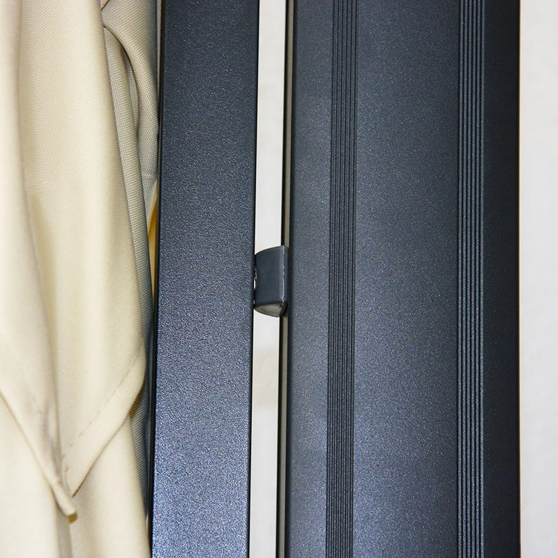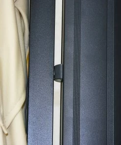 Achtung – der Schirm ist extrem groß. Damit dieser vollständig zusammen geklappt werden kann, ohne das der Bezug am Boden schleift, empfehlen wir die drehbare Version, da das Drehteil zu einer höheren Gesamthöhe führt und somit der Schirm auch geschlossen werden kann, ohne dass der Bezug Bodenkontakt hat.