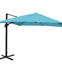 Aufgespannt deckt der Schirm eine rechteckige Fläche von 3x3m ab. Die Spannweite beträgt 4,30m.