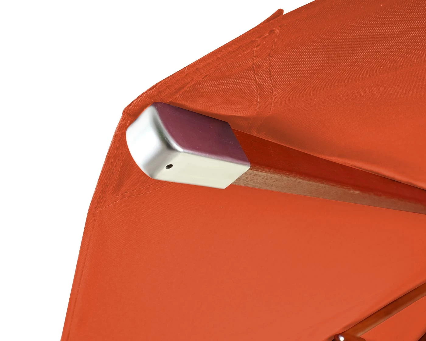 Der massive Holzmast und die mit Aluminium verstärkte Verstrebung tragen zu einem sicheren Stand bei. Durch das Winddach kann die Luft zirkulieren und der Schirm wird nicht zum gefährlichen Windfang. Auch bei einem leichten Regenschauer können Sie in Ruhe sitzen bleiben. Dafür sorgt der wasserabweisende Stoff aus gewebtem Polyester (Spun Poly). Dieser ist gegenüber einem normalen Polyester-Baumwollgemisch doppelt so langlebig, formstabil, atmungsaktiv, waschbar und muss nicht gebügelt werden. Das Mastende ist durch eine ca. 40 cm lange Aluminiumhülse ummantelt, welche ein Eindringen von Feuchtigkeit in das Holz verhindert. Der Schirm ist damit sowohl in einer Bodenhülse, als auch in einem Schirmständer bedenkenlos nutzbar. Durch das leichtgängige Seilzugsystem ist das Öffnen und Schließen kinderleicht. Dank der modernen Farbauswahl ist für jeden Geschmack das richtige Modell dabei. In der Variante anthrazit hat der Stoff eine Stärke von 300 g/m². Alle anderen Farben sind jedoch mit 240 g/m² nur unwesendlich leichter, was in der Qualität jedoch keinen Unterschied macht. Überzeugen Sie sich selbst von Qualität und Design.