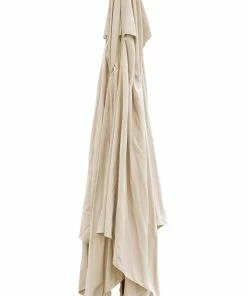 Der massive Holzmast und die mit Aluminium verstärkte Verstrebung tragen zu einem sicheren Stand bei. Durch das Winddach kann die Luft zirkulieren und der Schirm wird nicht zum gefährlichen Windfang. Auch bei einem leichten Regenschauer können Sie in Ruhe sitzen bleiben. Dafür sorgt der wasserabweisende Stoff aus gewebtem Polyester (Spun Poly). Dieser ist gegenüber einem normalen Polyester-Baumwollgemisch doppelt so langlebig, formstabil, atmungsaktiv, waschbar und muss nicht gebügelt werden. Das Mastende ist durch eine ca. 40 cm lange Aluminiumhülse ummantelt, welche ein Eindringen von Feuchtigkeit in das Holz verhindert. Der Schirm ist damit sowohl in einer Bodenhülse, als auch in einem Schirmständer bedenkenlos nutzbar.