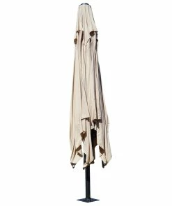 Der Bezug aus hochwertigem Polyester schützt Sie nicht nur zuverlässig vor UV-Strahlung, sondern ist außerdem kurzzeitig regenbeständig, so dass auch ein kleiner Schauer nicht zum Problem wird. Doppelt vernähter Schirmstoff und verstärkte Metallstreben sorgen für windstabilen Stand und zusätzliche Stabilität, während Sie, dank der integrierten Luftzirkulationshaube, immer einen kühlen Kopf bewahren. Gefertigt aus pulverbeschichtetem, rostfreien Aluminium unterstreicht das Gestänge die Hochwertigkeit der verwendeten Materialien noch einmal und bietet Rundum-Schutz vom Feinsten. Der Mast besteht aus einem Teil und weist somit eine höhere Standfestigkeit aus.